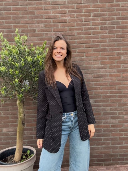 De perfecte mix van chic & comfy. Deze blazer heeft een diep zwarte tint en is subtiel afgewerkt met mini sparkles die net dat beetje extra geven – zonder té. Draag ‘m casual met jeans en een basic body, of juist classy over een jurk voor een avondje uit.