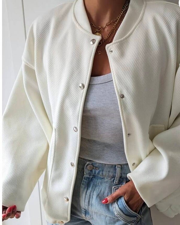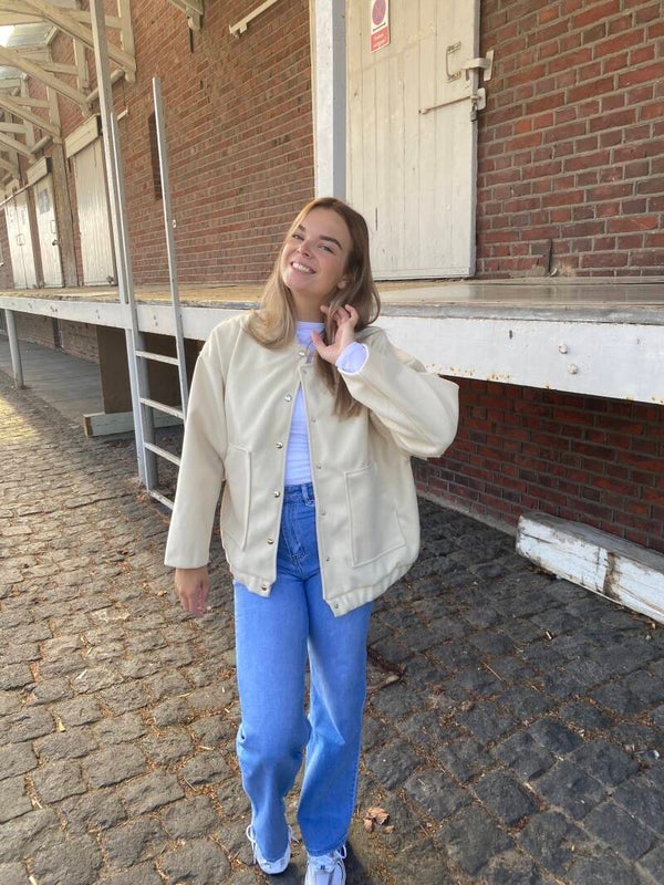 Te leuk deze bomberjack oversized met grote zakken en drukknoppen