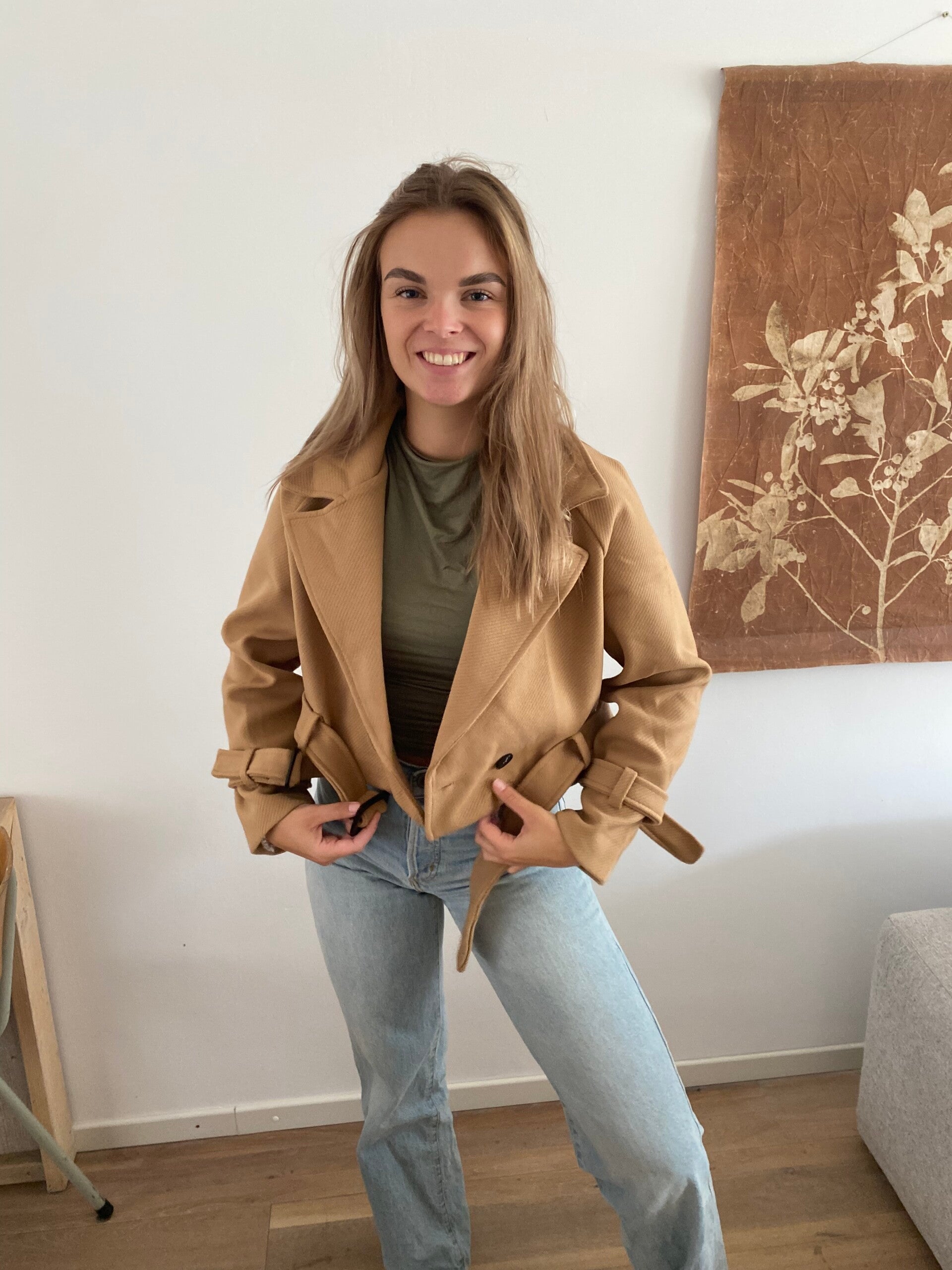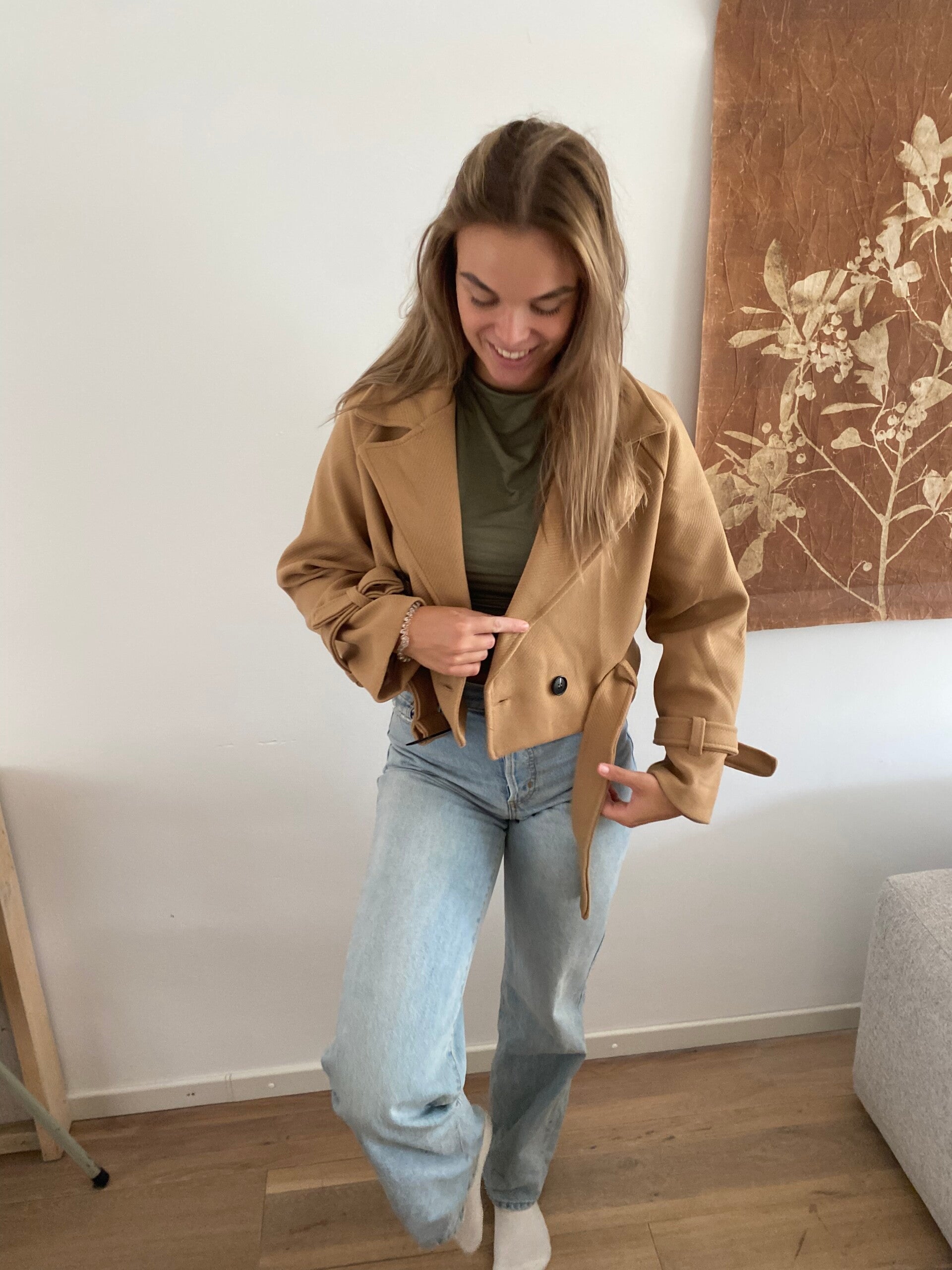Deze korte trenchcoat maakt jouw outfit compleet !