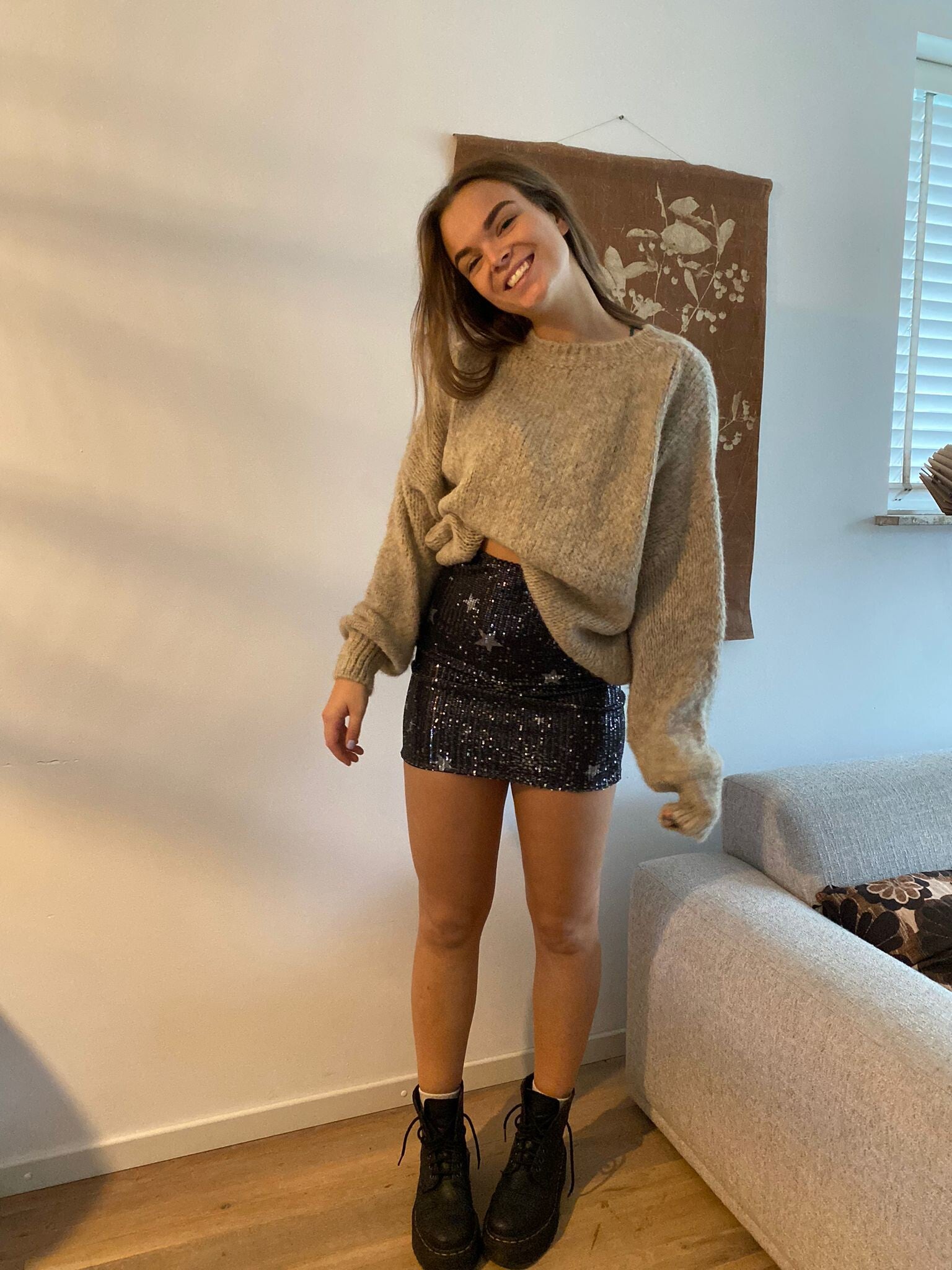 Elastiek in de taille en de rok is gevoerd..prikt niet