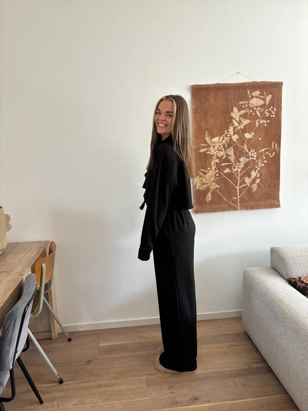 Mooie wijde broek met elastiek in de taille en zijzakken