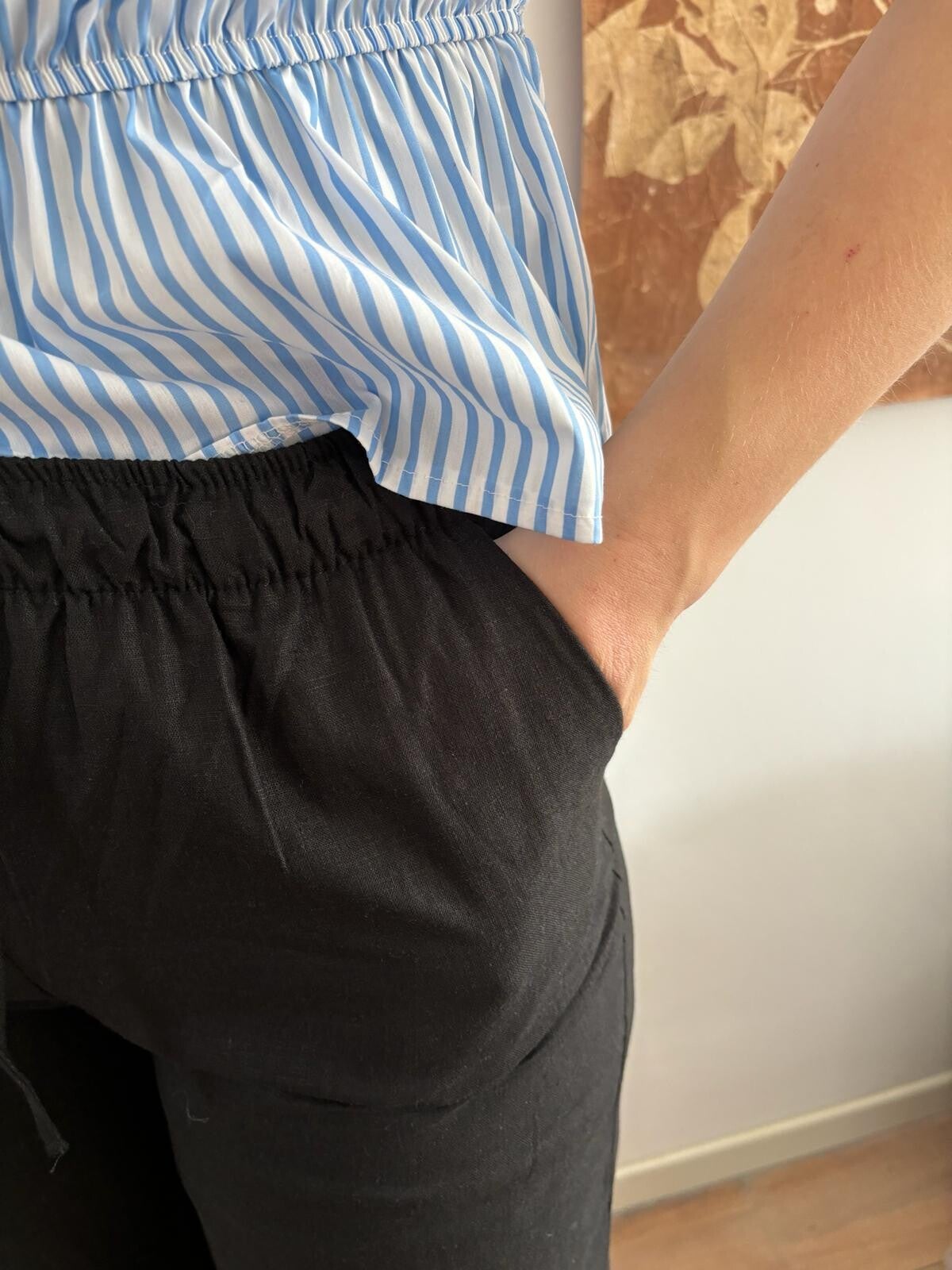 * Linnen pants* Maat S/M M/L* We hebben deze ook in het beige* Wide fit* Elastiek en koortje in de taille