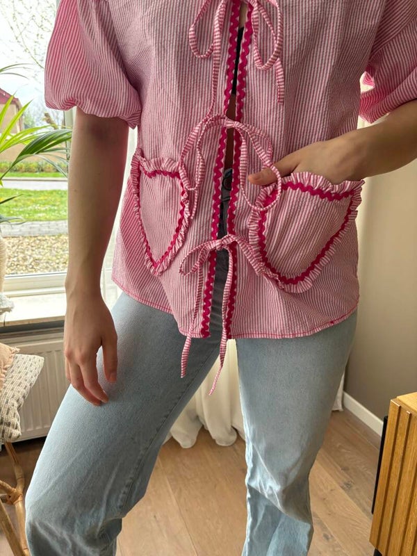 * One size* Roze/red* Cotton * Rood hart voorpand* 3 strikken* Poofy mouwen