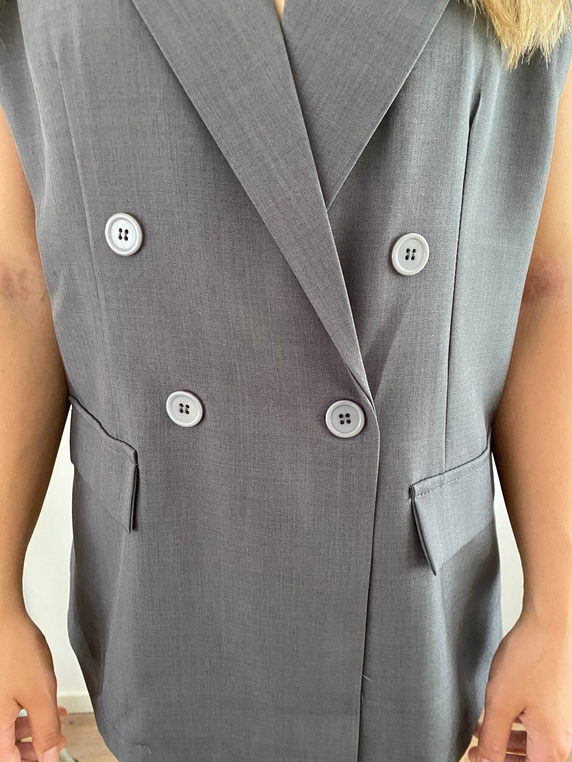 * Gilet met open rug* Maat: one size* Kleur:Grey* Loose fit