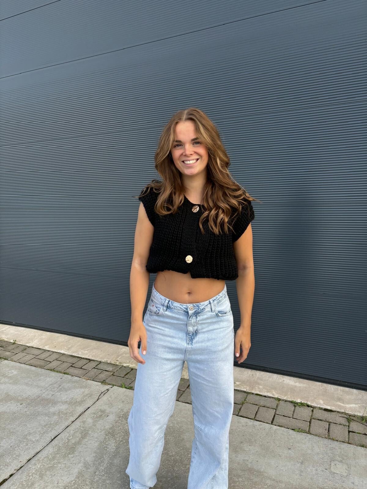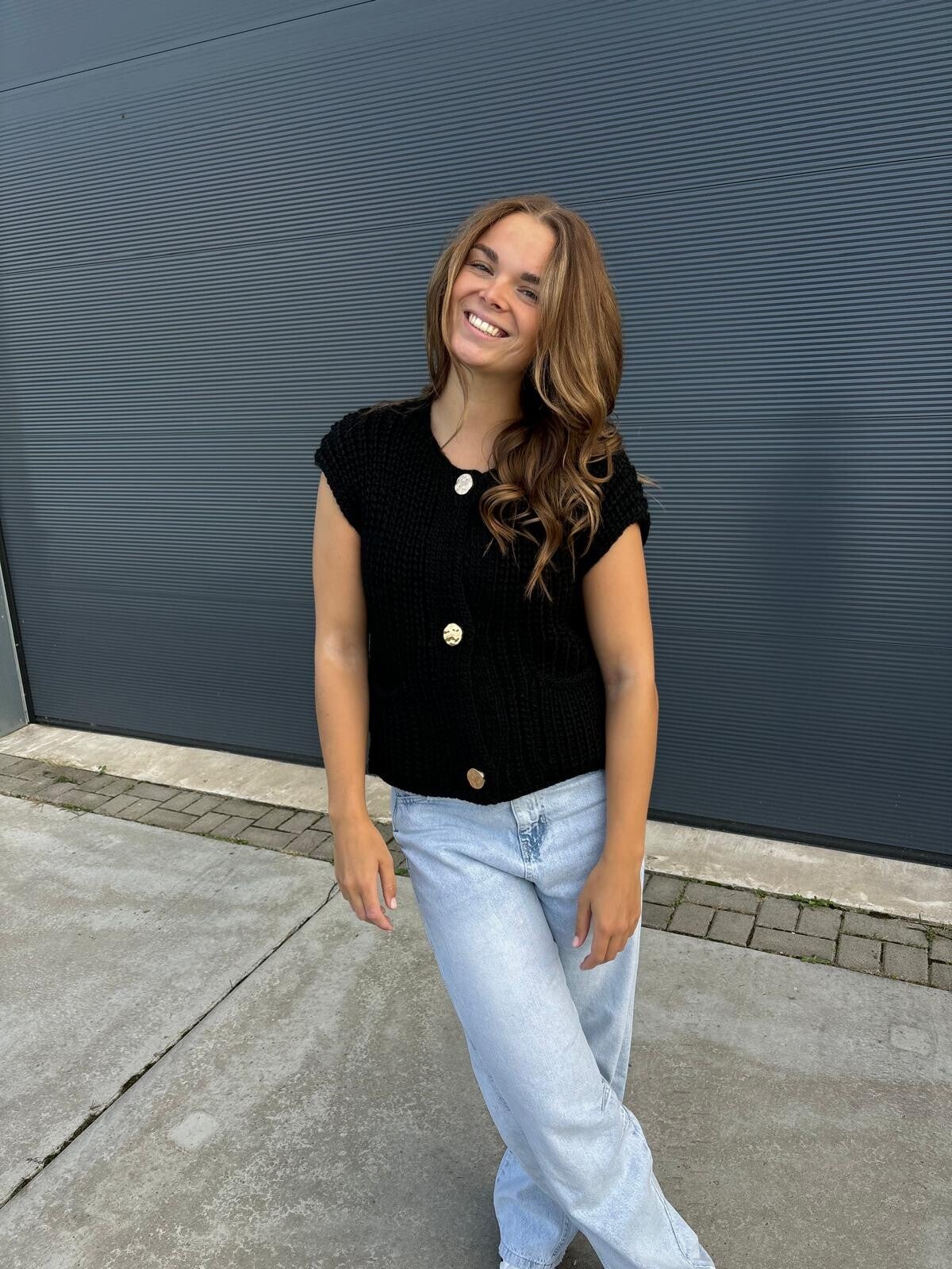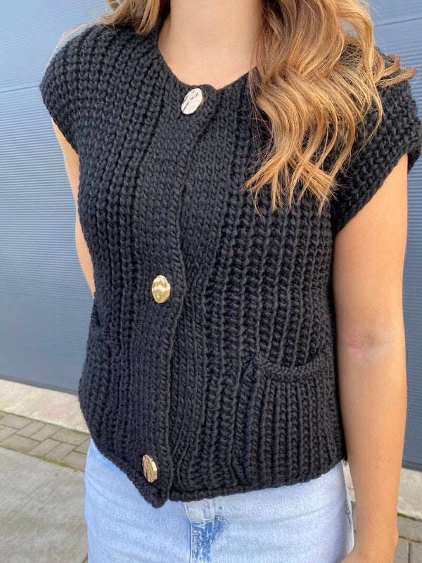 Gilet / Vest zonder mouwen met grote gouden knopen en 2 zakjes