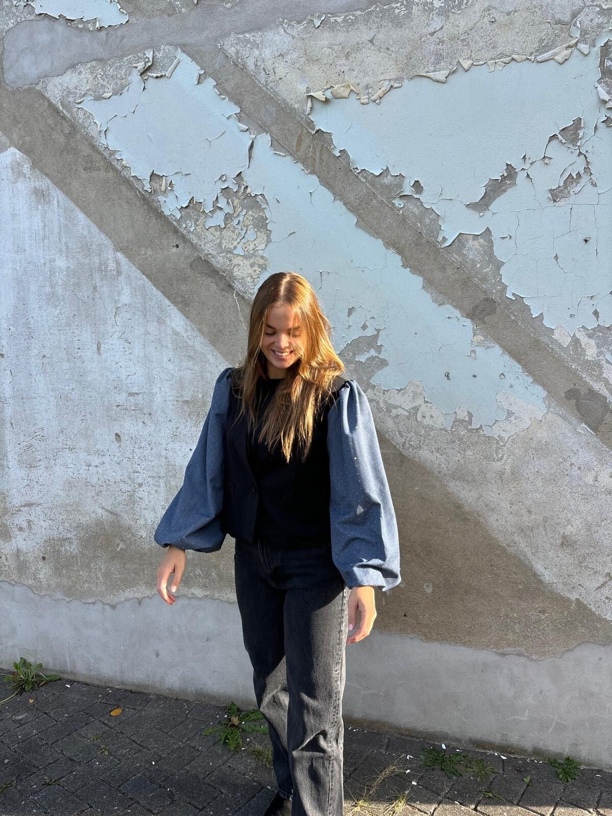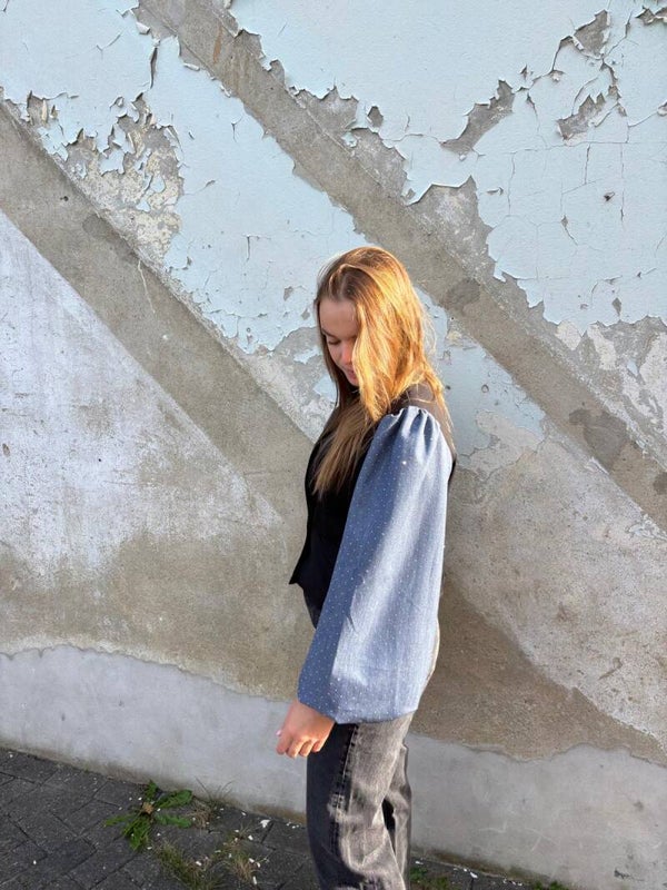 Prachtige blazer met diamant pofmouwen