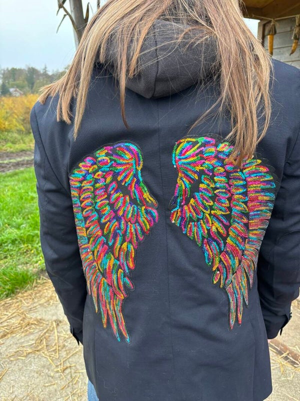Vintage blazer met glitter vleugels als back print