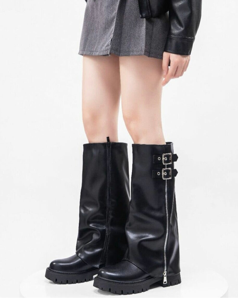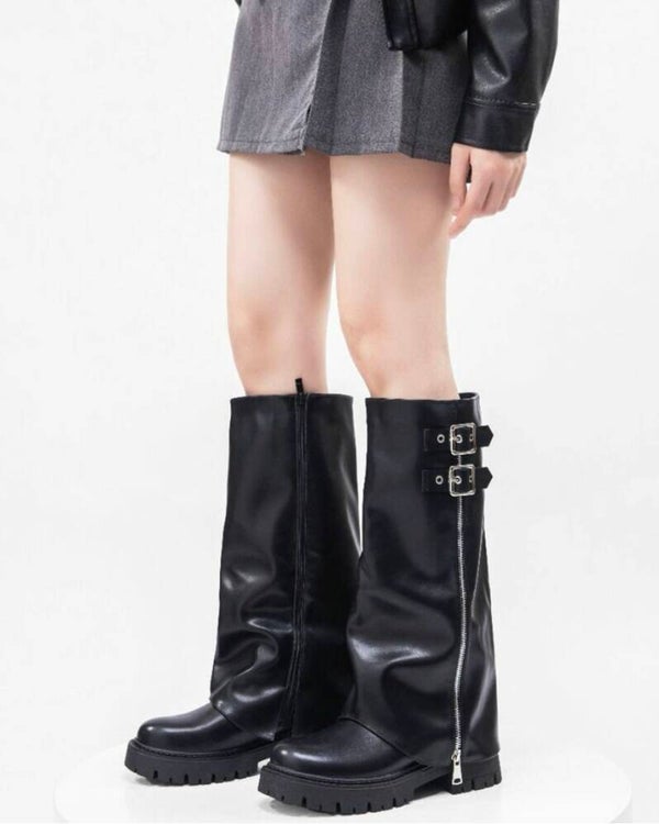 Edgy boots met chunky zool, zilverkleurige rits en dubbele gesp. Stoer, stijlvol en perfect voor een rebelse touch.
