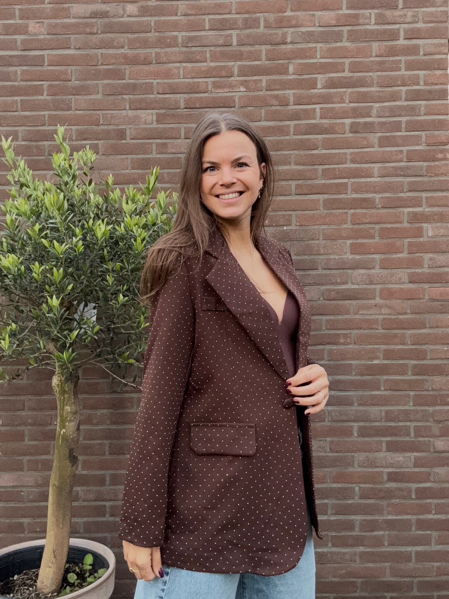 De perfecte mix van chic & comfy. Deze blazer heeft een warme bruine tint en is subtiel afgewerkt met mini sparkles die net dat beetje extra geven – zonder té. Draag ‘m casual met jeans en een basic body, of juist classy over een jurk voor een avondje uit.