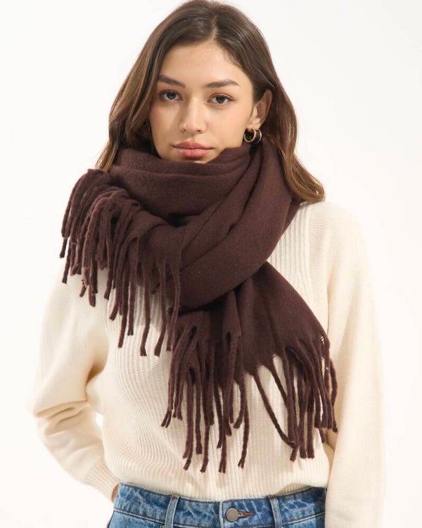 Cozy Fringe Scarf – Chocolate Brown