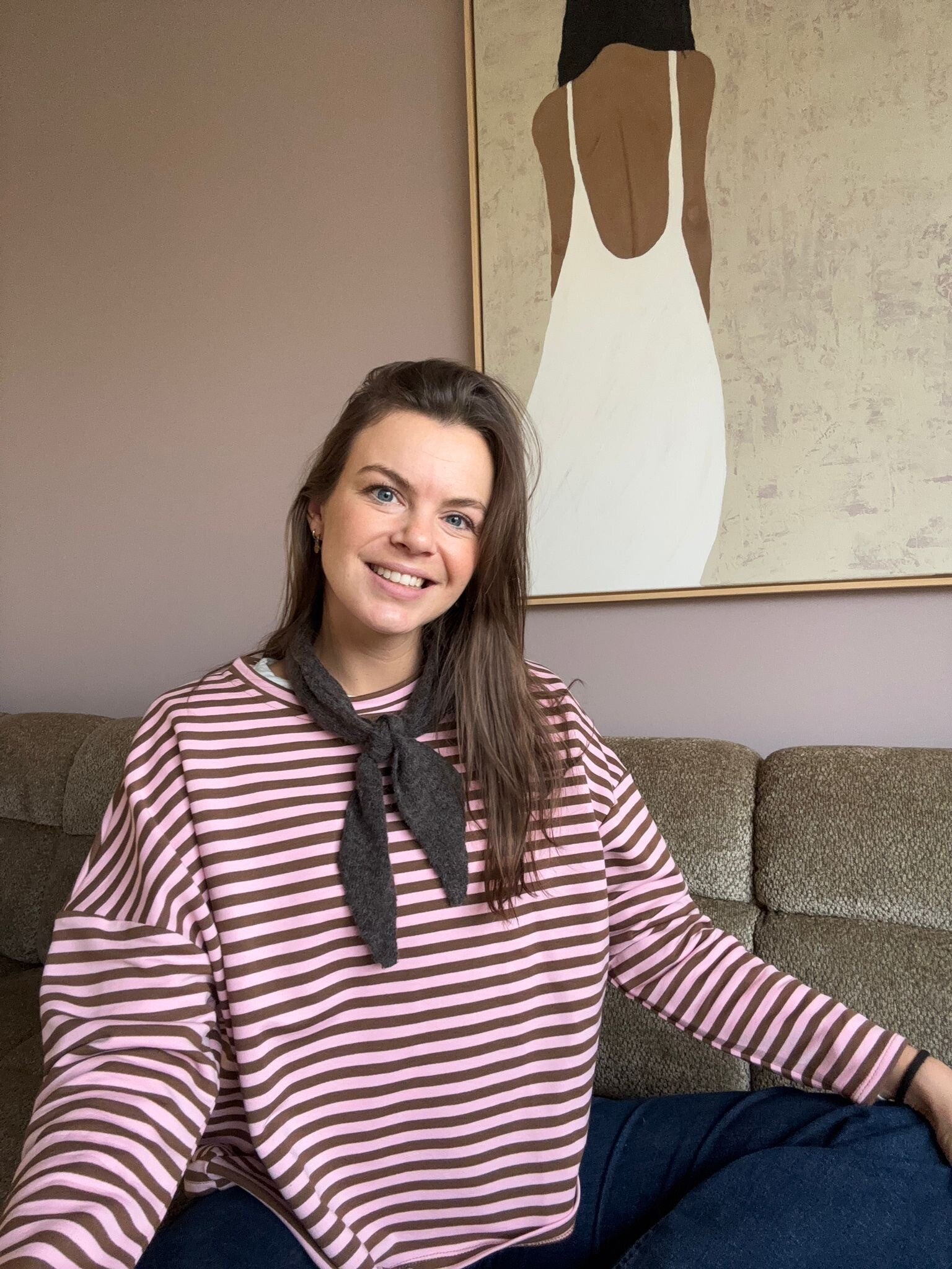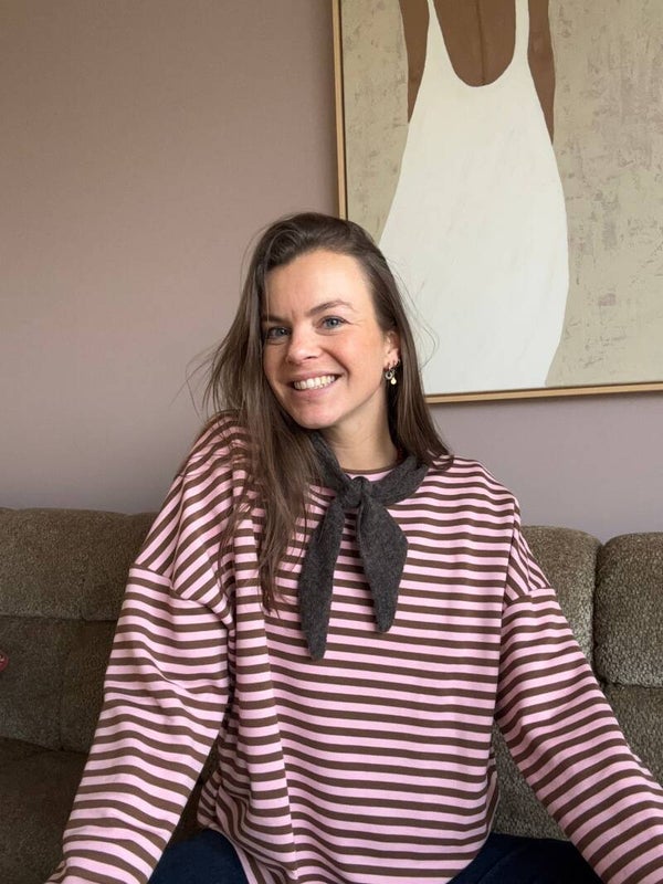 longsleeve met roze-bruin strepen — perfect als everyday basic met een speelse twist.