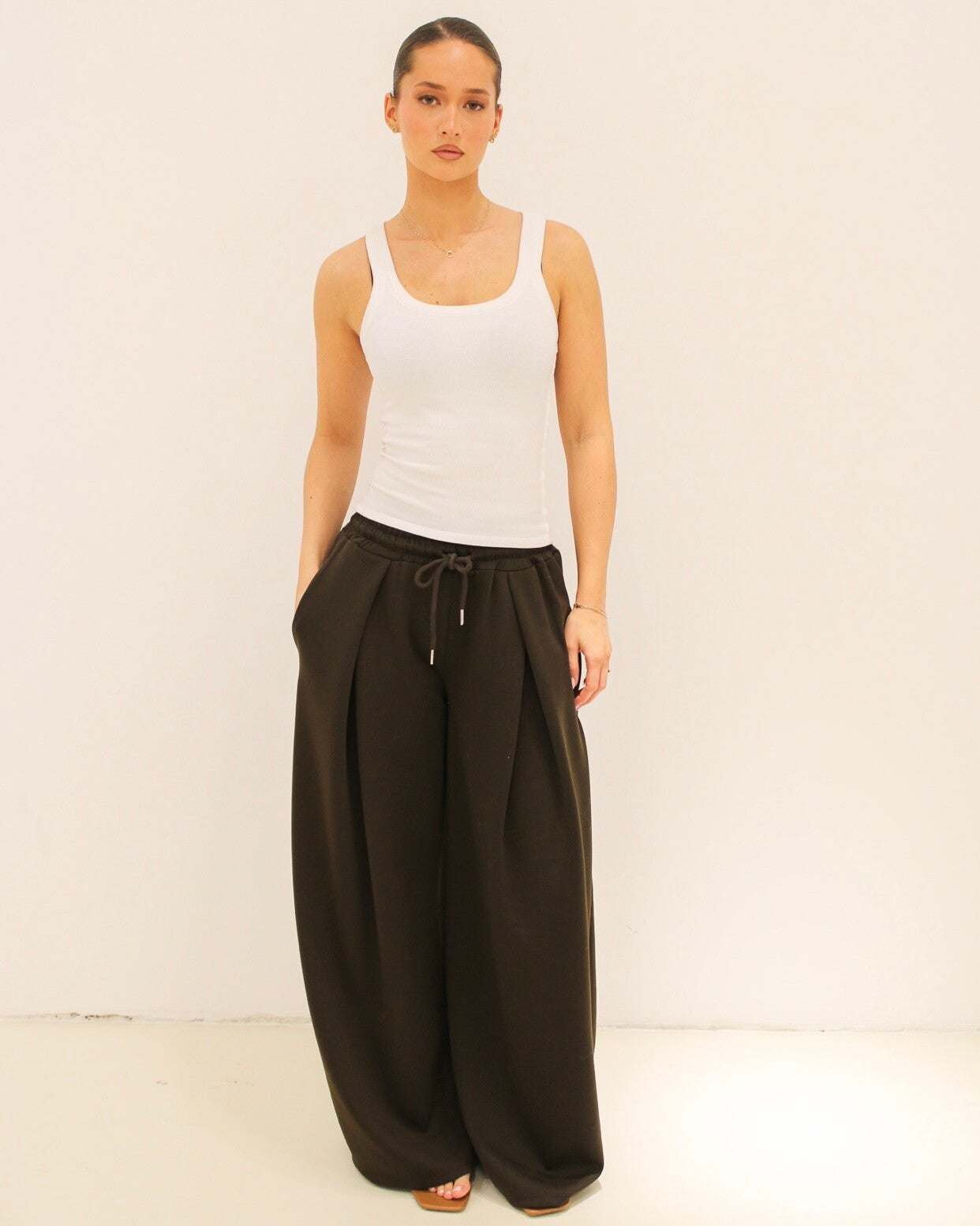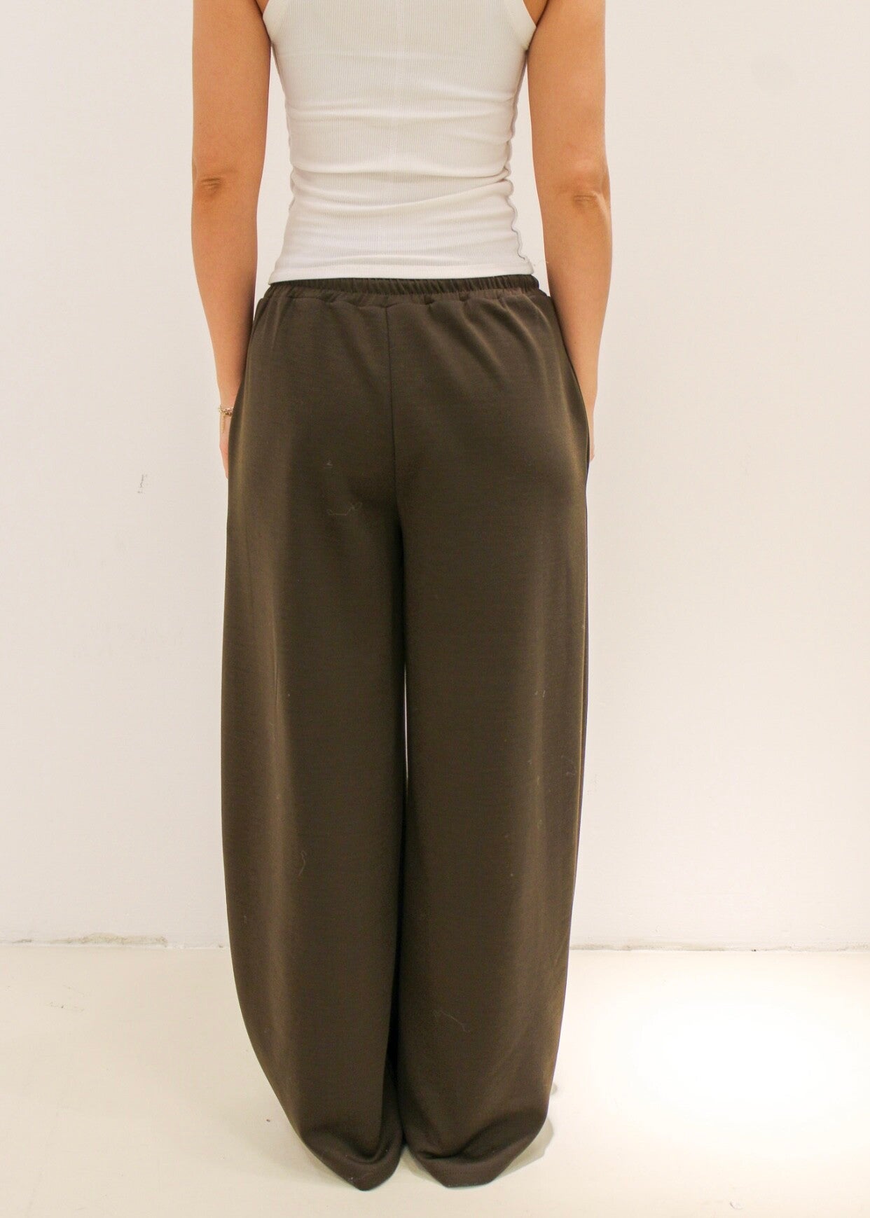Super comfortabele broek met een oversized, wijde fit en elastische tailleband met koord. De stof valt soepel en geeft die trendy baggy / balloon look die je nu overal ziet.
