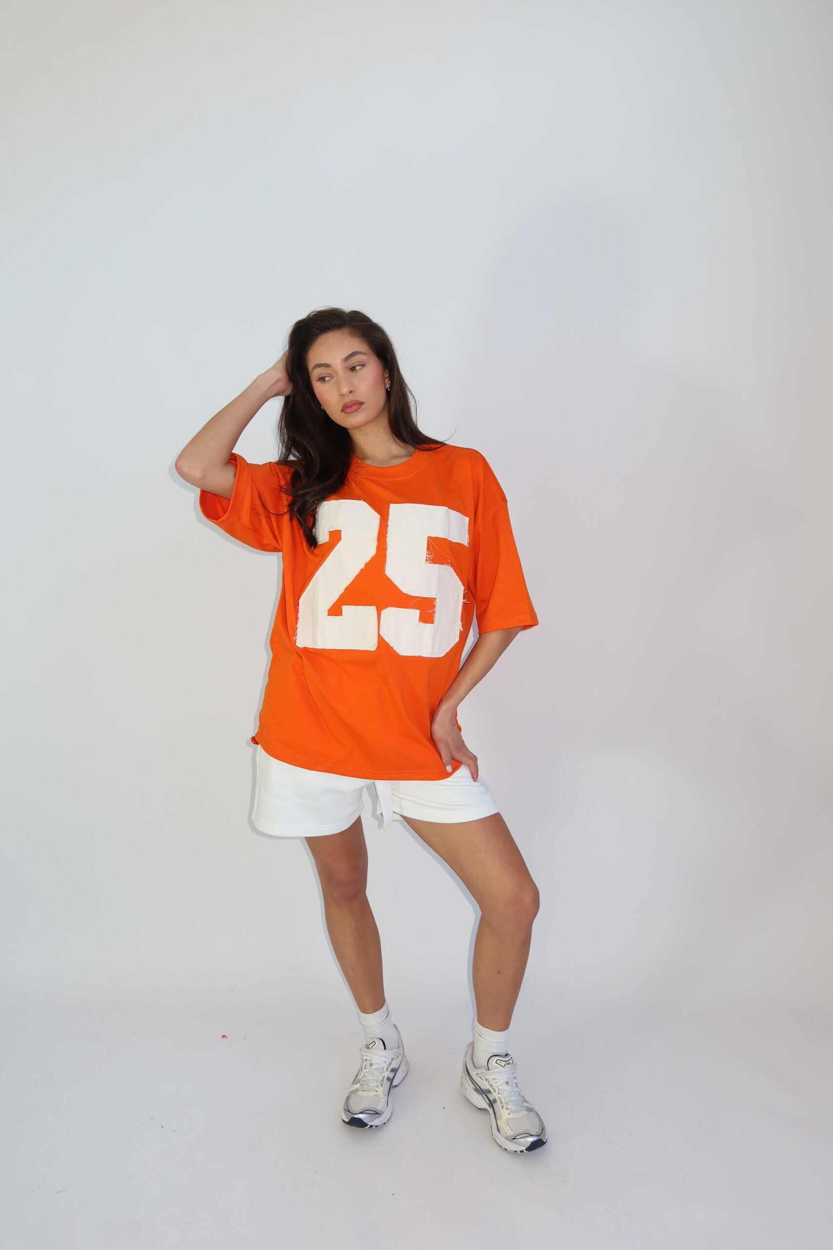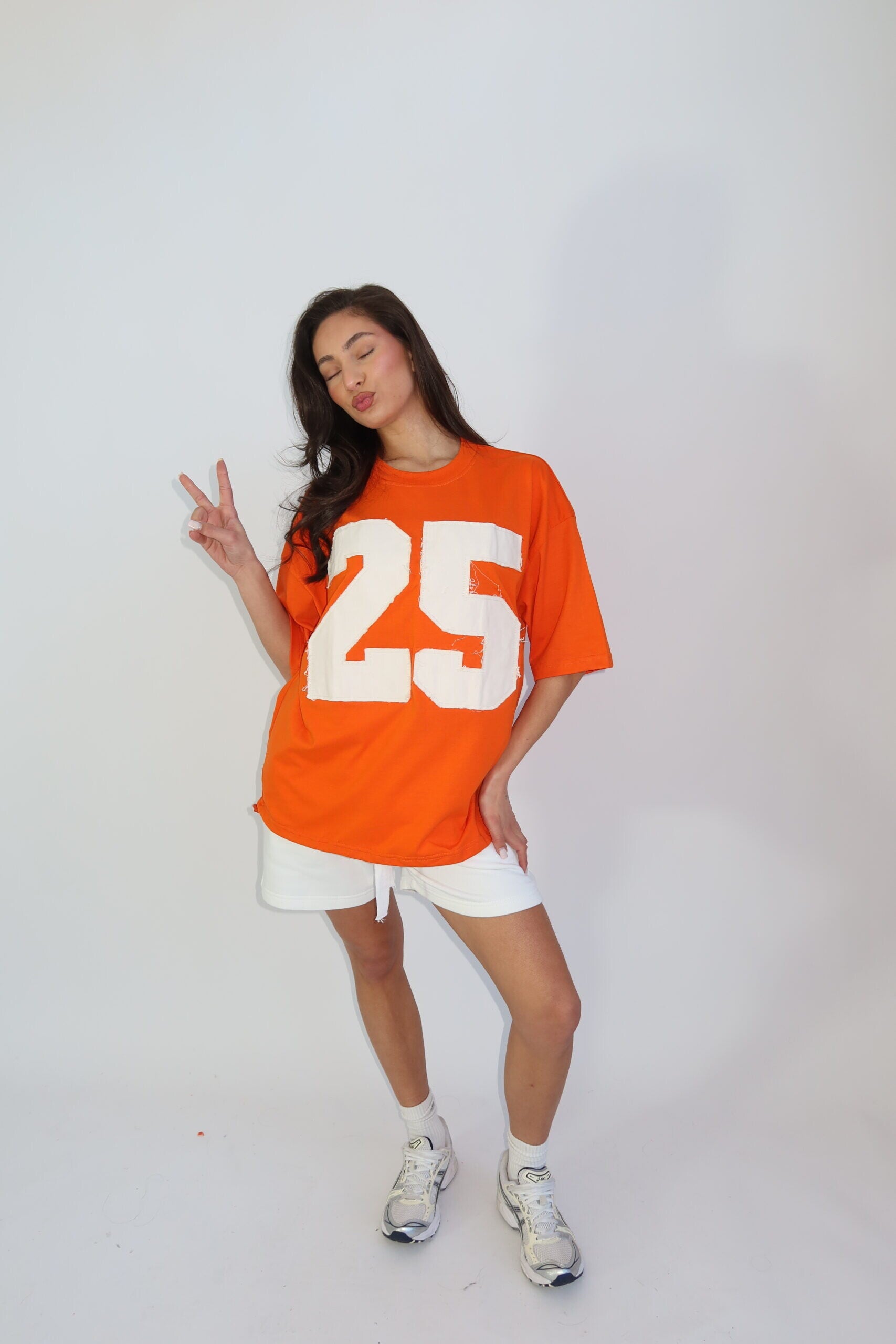 Oranje oversized T-shirt met grote 25 print
